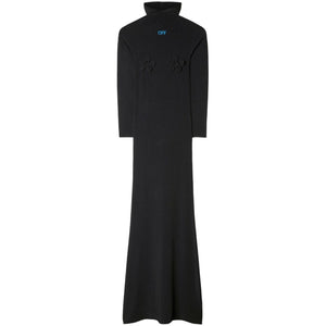 floral-appliqué hooded dress from OFF-WHITE featuring black, sky blue, floral appliqué, embroidered logo, classic hood, long sleeves, flared and long length. High-neck long dress Size and Fit - This piece fits true to size. We recommend you get your regular size. Model is 1,75m / 5ft 8in wearing size 40 (IT)