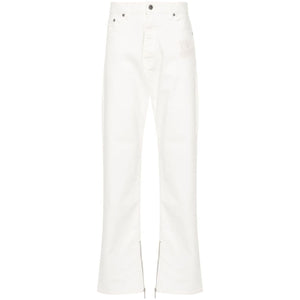 optical white stretch-cotton raw denim straight leg belt loops classic five pockets logo patch to the rear cuff zips button fly fastening Logo denim jeans Size and Fit - This piece fits true to size. We recommend you get your regular size. Model is 1,84m / 6ft 1in wearing size 32 (WAIST CM)