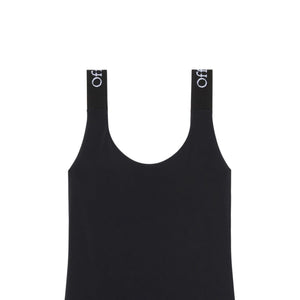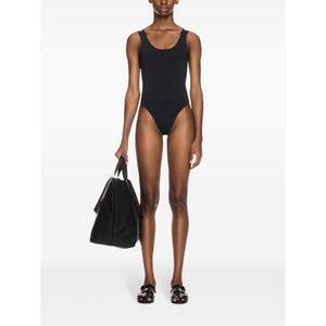 black low back wide shoulder straps scoop neck Be mindful to try on swimwear over your own garments. Logo swimsuit Size and Fit - This piece fits true to size. We recommend you get your regular size. Model is 1,75m / 5ft 8in wearing size 40 (IT)