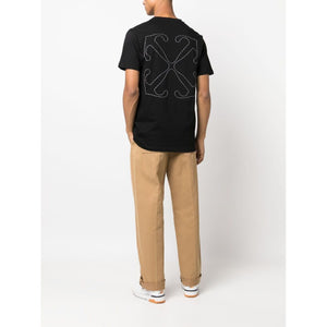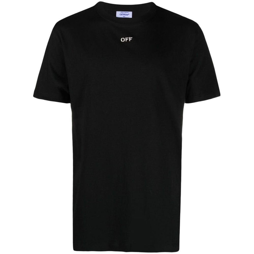 Arrows-embroidered cotton T-shirt from OFF-WHITE featuring black/white, cotton, logo print to the front, signature Arrows motif, embroidered logo to the rear, crew neck and short sleeves. Logo cotton t-shirt Size and Fit - This piece fits true to size. We recommend you get your regular size. Model is 1,84m / 6ft 1in wearing size M