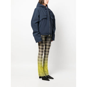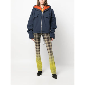faux-fur lining hooded jacket from OTTOLINGER featuring navy blue, pumpkin orange, drawstring hood, front two-way zip fastening, rear tie fastening, extra-long sleeves and faux-fur lining. Hooded jacket Size and Fit - This piece fits true to size. We recommend you get your regular size. Model is 1,75m / 5ft 8in wearing size S