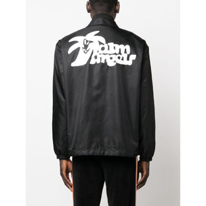 logo-patch lightweight jacket from PALM ANGELS featuring logo patch at the chest, logo patch to the rear, front button fastening, long sleeves, elasticated cuffs, two side welt pockets, straight hem, black and classic collar. Printed coach jacket Size and Fit - This piece fits true to size. We recommend you get your regular size. Model is 1,84m / 6ft 1in wearing size M