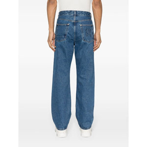blue cotton denim mid-wash contrast stitching belt loops at the waist logo-engraved button classic five pockets patch detail at the front embossed logo to the rear internal logo tag straight leg and hem front button and zip fastening Monogram denim jeans Size and Fit - This piece fits true to size. We recommend you get your regular size. Model is 1,84m / 6ft 1in wearing size 32 (WAIST CM)