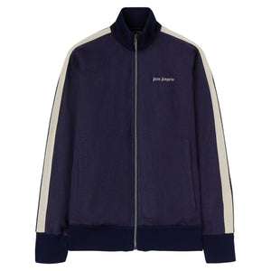 navy blue/off-white linen embroidered logo at the chest side stripe detailing high neck long sleeves front zip fastening slip pockets to the sides Logo track jacket Size and Fit - This piece fits true to size. We recommend you get your regular size. Model is 1,84m / 6ft 1in wearing size M