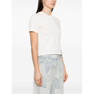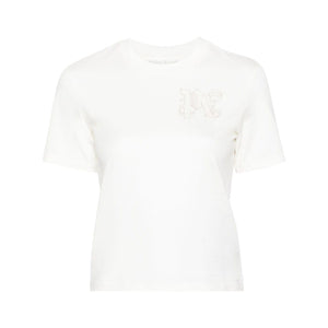 white cotton embroidered logo at the chest crew neck short sleeves straight hem Logo cotton t-shirt Size and Fit - This piece fits true to size. We recommend you get your regular size. Model is 1,75m / 5ft 8in wearing size S