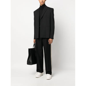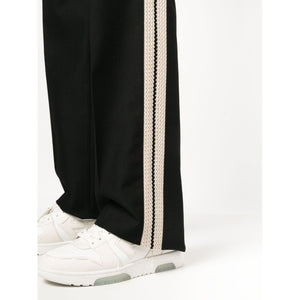 stripe-detail cotton tailored trousers from PALM ANGELS featuring black, off-white, cotton, logo patch to the rear, side stripe detailing, high waist, belt loops, concealed front fastening, two side slit pockets, two rear flap pockets and straight leg. Cotton track pants Size and Fit - This piece fits true to size. We recommend you get your regular size. Model is 1,84m / 6ft 1in wearing size M