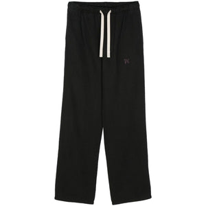 black lyocell-cotton blend twill weave elasticated waistband two side welt pockets monogram embroidery to the side two rear welt pockets straight leg drawstring fastening waist Monogram cotton blend trousers Size and Fit - This piece fits true to size. We recommend you get your regular size. Model is 1,84m / 6ft 1in wearing size 48 (IT)