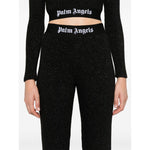black knitted construction lurex detailing elasticated waistband logo-tape detailing flared pull-on style Logo lurex flared trousers Size and Fit - This piece fits true to size. We recommend you get your regular size. Model is 1,75m / 5ft 8in wearing size S