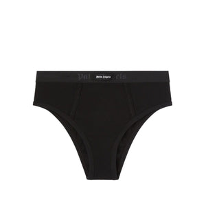 black stretch-design appliqué logo high waist elasticated logo waistband Just a reminder that this piece must be tried on over your own garments. Logo cotton coulottes