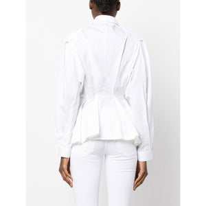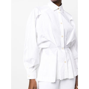 gathered-waist cotton shirt from Palmer//Harding featuring white, cotton, gathered detailing, classic collar, front button fastening, long sleeves, buttoned cuffs, pleat detailing and straight hem. Cotton shirt Size and Fit - This piece fits true to size. We recommend you get your regular size. Model is 1,75m / 5ft 8in wearing size 8 (UK)