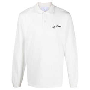 Mister LS logo-embroidered polo shirt from Palmes featuring off-white, organic cotton, embroidered logo at the chest, polo collar, front button placket, long sleeves and straight hem. This item is made from at least 50% organic materials.. Learn more about what makes a product Conscious on our Conscious Criteria page. Logo organic cotton polo shirt Size and Fit - This piece fits true to size. We recommend you get your regular size. Model is 1,84m / 6ft 1in wearing size M