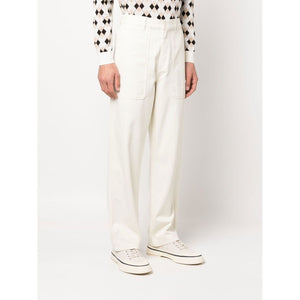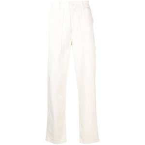 Broom straight-leg trousers from Palmes featuring off-white, organic cotton, straight leg, logo patch to the rear, belt loops, concealed fly and button fastening, two front patch pockets and two rear patch pockets. Conscious: This item is made from at least 50% organic materials. Organic cotton trousers Size and Fit - This piece fits true to size. We recommend you get your regular size. Model is 1,84m / 6ft 1in wearing size 48 (IT)