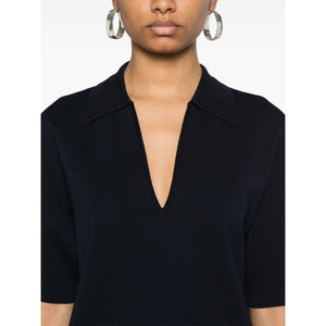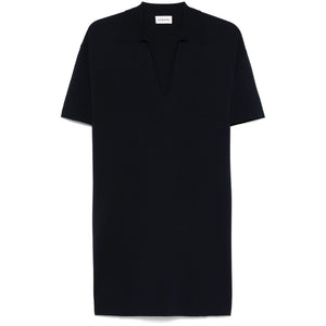 navy blue V-neck short sleeves Roma t-shirt dress Size and Fit - This piece fits true to size. We recommend you get your regular size. Model is 1,75m / 5ft 8in wearing size S