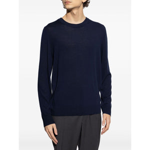 navy blue crew neck long sleeves ribbed trim Wool crewneck sweater