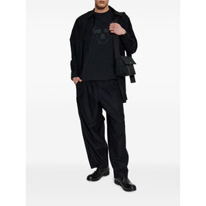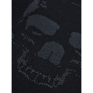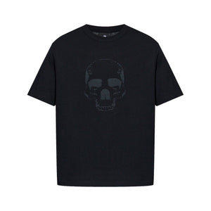 black front skull graphic short sleeves relaxed fit crew neckline straight hem dropped shoulders subtle shine Skull cotton t-shirt Size and Fit - This piece fits true to size. We recommend you get your regular size. Model is 1,84m / 6ft 1in wearing size M