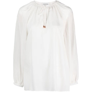 self-tie silk blouse from phaeonia featuring white, silk, self-tie fastening, keyhole neck, long raglan sleeves and elasticated cuffs. Anita long sleeves blouse Size and Fit - This piece fits true to size. We recommend you get your regular size. Model is 1,75m / 5ft 8in wearing size 40 (IT)