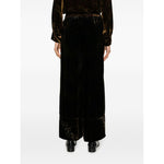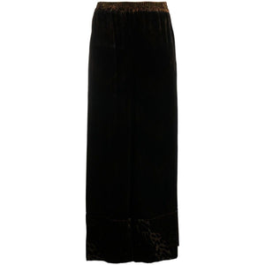 dark green velvet leopard print wide leg elasticated waistband two side inset pockets Silk printed trousers
