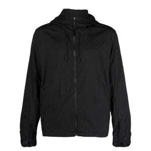 black lightweight ripstop texture water-resistant drawstring hood front zip fastening two side inset pockets elasticated drawstring waistband bonded seams 5.1 Technical Jacket Right (Black) Size and Fit - This piece fits true to size. We recommend you get your regular size. Model is 1,84m / 6ft 1in wearing size M