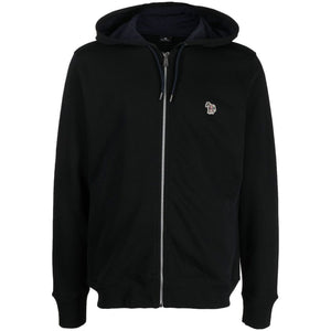 Organic cotton zip hoodie from PS Paul Smith featuring black, cotton, signature Zebra motif, drawstring hood, front zip fastening, elasticated cuffs and elasticated hem. Zebra logo cotton hoodie Size and Fit - This piece fits true to size. We recommend you get your regular size. Model is 1,84m / 6ft 1in wearing size M