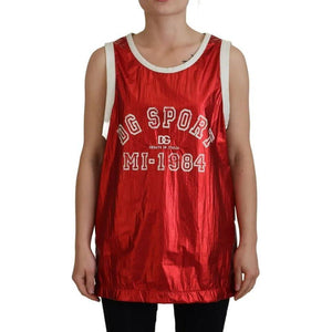 Dolce & Gabbana Red Nylon Logo Print Sleeveless Jersey Top