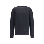 The Rick Owens Ribbed Sweater stands out for its fully ribbed design. Featuring a high neck and dropped shoulders, it offers a modern and comfortable silhouette.