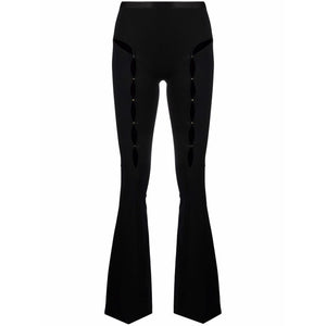 Bright-white cut out-detail high-waisted trousers from RUI featuring cut-out detailing, fine knit, high-waisted and two diagonal pockets to the sides. Cut-out detail flared trousers Size and Fit - This piece fits true to size. We recommend you get your regular size. Model is 1,75m / 5ft 8in wearing size S