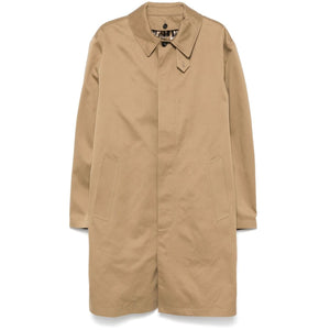 medium beige cotton gabardine weave concealed front button fastening classic collar long sleeves two side slit pockets central rear vent removable faux-fur lining straight hem Cotton coat Size and Fit - This piece fits true to size. We recommend you get your regular size. Model is 1,84m / 6ft 1in wearing size 48 (IT)