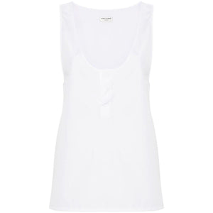 white cotton poplin texture U-neck sleeveless straight hem front button placket We've partnered with Good On You — an independent agency that rates how brands perform in relation to their impact on the planet, people and animals, with a multi-criteria rating simplified to a five points scale. In order to be awarded our conscious label, larger brands need to score a minimum of four out of five ('Good'), while smaller brands must score at least three out of five ('It's A Start'). This item comes from a brand rated three out of five ('It's A Start') by Good on You at the time it was added on FARFETCH. Please note, this is a brand-level rating and does not guarantee that this product is made with conscious materials. Learn more about what makes a product Conscious on our Conscious Criteria page Cotton poplin top Size and Fit - This piece fits true to size. We recommend you get your regular size. Model is 1,75m / 5ft 8in wearing size 36 (FR)