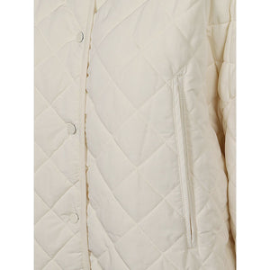 Short black jacket characterized by quilted texture, long sleeves, mandarin collar, two welt pockets on the front, front closure with snap buttons, soft to the touch. Quilted nylon jacket Size and Fit - This piece fits true to size. We recommend you get your regular size. Model is 1,75m / 5ft 8in wearing size S