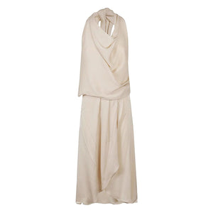 Beige dress, with closure on the back, neckline on the back, with skirt. Worth Ave silk short dress Size and Fit - This piece fits true to size. We recommend you get your regular size. Model is 1,75m / 5ft 8in wearing size S