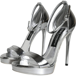 Dolce & Gabbana Silver KEIRA Heels Ankle Strap Sandals Shoes