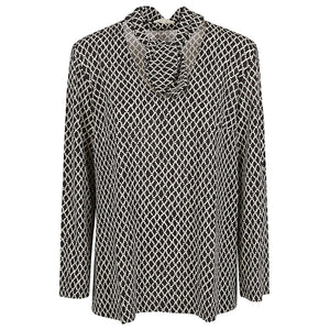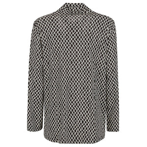 Black shirt, V -neck, neck laces. Printed blouse Size and Fit - This piece fits true to size. We recommend you get your regular size. Model is 1,75m / 5ft 8in wearing size 36 (ES)