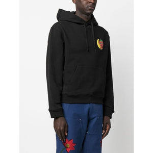 chest graphic-print detail hoodie from Sky High Farm featuring graphic print at the chest, drawstring hood, long sleeves, single patch pocket, jet black, organic cotton, recycled cotton and ribbed detailing. Conscious: This item is made from at least 50% recycled or upcycled materials. For recycled synthetic clothing products we highly recommend using a microfibre-catching washing bag to ensure that no microplastics that can pollute water are released in the process.. Printed cotton hoodie Size and Fit - This piece fits true to size. We recommend you get your regular size. Model is 1,84m / 6ft 1in wearing size M