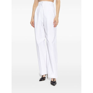 white pleat front design wide-leg silhouette hidden side pockets belt loops hook and zip fastening Cotton trousers Size and Fit - This piece fits true to size. We recommend you get your regular size. Model is 1,75m / 5ft 8in wearing size 40 (IT)