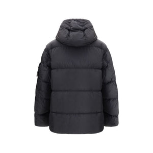Stone Island’s hooded Down Jacket combines functionality with distinctive technical style. The padded hood is adjustable via drawstring for a perfect fit, while the two exterior pockets offer practical solutions: one with a top opening, triangular flap and snap, the other vertical with a hidden snap. Inside, a button pocket is embellished with the embroidered Compass logo, the brand’s iconic symbol. Completing the design is the Stone Island badge applied on the left sleeve, internally elasticated cuffs for a better fit and an adjustable drawstring hem. The closure is provided by a concealed double-slider zipper, accompanied by a snap on the inside flap, for a clean and functional look.