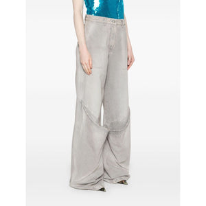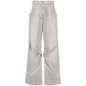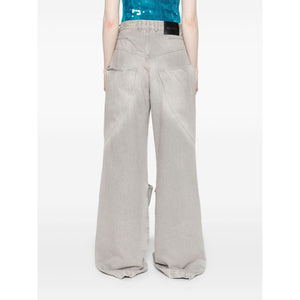 light grey cotton denim distressed effect slashed details dart detailing logo patch to the rear logo-embossed buttons wide leg high-rise concealed fly and button fastening belt loops two diagonal pockets to the sides two rear patch pockets straight hem Wide-leg denim cotton jeans Size and Fit - This piece fits true to size. We recommend you get your regular size. Model is 1,75m / 5ft 8in wearing size 27 (WAIST CM)