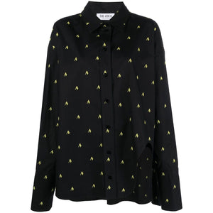 Diana oversized logo-print shirt from The Attico featuring black, cotton, all-over logo print, long sleeves, buttoned cuffs and asymmetric hem. Allover print shirt Size and Fit - This piece fits true to size. We recommend you get your regular size. Model is 1,75m / 5ft 8in wearing size 40 (IT)