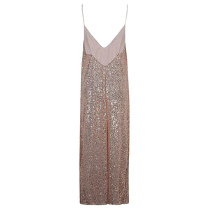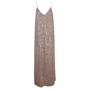 Long dress with sequins, V-neck, thin straps with low back. Afrodite sequin dress Size and Fit - This piece fits true to size. We recommend you get your regular size. Model is 1,75m / 5ft 8in wearing size S