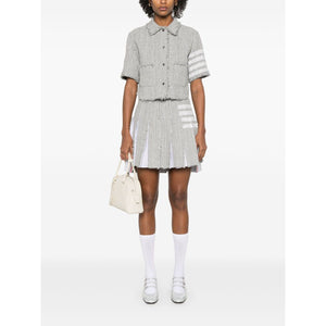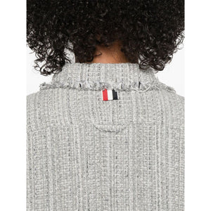 medium grey front button fastening two chest patch pockets frayed edge signature 4-Bar tab Cotton blend shirt