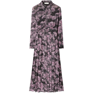 Pink/black, silk, floral print, pleated skirt, short front buttoning, side hidden zip closure, long sleeves and mid-calf height. Printed silk maxi dress Size and Fit - This piece fits true to size. We recommend you get your regular size. Model is 1,75m / 5ft 8in wearing size 4 (US)