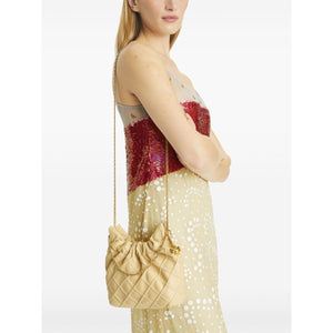yellow nappa leather diamond pattern drawstring and magnetic fastening two chain-link top handles chain-link shoulder strap logo charm main compartment Fleming mini leather hobo bag Size and Fit - Width 8,66 in / 22 cm Height 5,91 in / 15 cm Depth 2,76 in / 7 cm Handle 5,91 in / 15 cm Strap 46,06 in / 117 cm