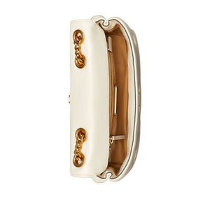 ivory gold-tone logo detail chain shoulder strap diamond quilting pattern flap closure Kira Diamond small leather shoulder bag Size and Fit - Width 22.5 cm, Height 15.5 cm, Depth 7.5 cm, Shoulder strap 100 cm.