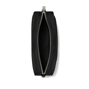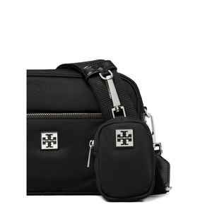 black adjustable shoulder strap detachable mini pouch front zip pocket silver-tone hardware Virginia nylon shoulder bag Size and Fit - Width 23 cm, Height 15 cm, Depth 7 cm, Shoulder strap 100 cm