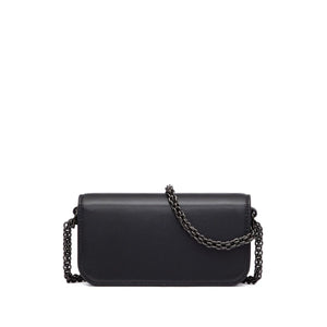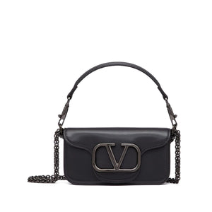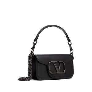 black calf leather maxi VLogo Signature foldover top with magnetic fastening chain-link shoulder strap internal slip pocket Locò small leather shoulder bag Size and Fit - Width 7,87 in / 20 cm