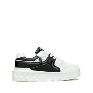 white/black calf leather mesh panelling signature Roman Stud detailing logo-debossed tongue front lace-up fastening round toe branded insole chunky rubber sole One Stud XL leather sneakers Size and Fit - Heel 1,8 in / 4,5 cm; Platform 1,6 in / 4 cm