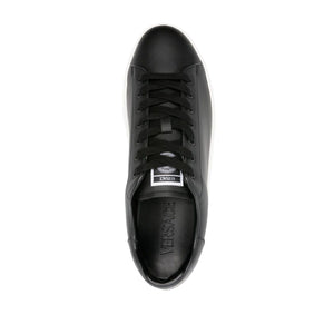 White/black, Faux leather, embossed Greca detail, logo patch on the tongue, branded heel counter, tone-on-tone stitching, round toe, front lace-up closure, padded ankle, branded insole, flat rubber sole. Greca leather sneakers Size and Fit - Heel 1,2 in / 3 cm; Platform 1,2 in / 3 cm