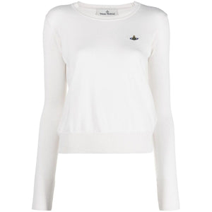 Orb-embroidered cotton-cashmere jumper from VIVIENNE WESTWOOD featuring off-white, fine knit, crew neck, signature Orb logo embroidery, long sleeves, straight hem and ribbed cuffs and hem. We've partnered with Good On You — an independent agency that rates how brands perform in relation to their impact on the planet, people and animals, with a multi-criteria rating simplified to a five points scale. In order to be awarded our conscious label, larger brands need to score a minimum of four out of five ('Good'), while smaller brands must score at least three out of five ('It's A Start'). This item comes from a brand rated three out of five ('It's A Start') by Good on You. Please note, this is a brand-level rating and does not guarantee that this product is made with conscious materials.. Learn more about what makes a product Conscious on our Conscious Criteria page. Orb logo sweater Size and Fit - This piece fits true to size. We recommend you get your regular size. Model is 1,75m / 5ft 8in wearing size S