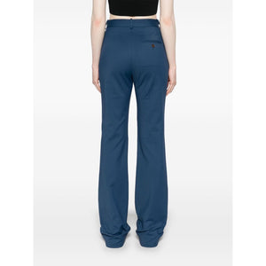 navy blue stretch-design tailored design belt loops pleat detailing high-waisted concealed front button, hook and zip fastening slight flare two side slit pockets rear button-fastening jetted pocket We've partnered with Good On You — an independent agency that rates how brands perform in relation to their impact on the planet, people and animals, with a multi-criteria rating simplified to a five points scale. In order to be awarded our conscious label, larger brands need to score a minimum of four out of five ('Good'), while smaller brands must score at least three out of five ('It's A Start'). This item comes from a brand rated three out of five ('It's A Start') by Good on You at the time it was added on FARFETCH. Please note, this is a brand-level rating and does not guarantee that this product is made with conscious materials. Learn more about what makes a product Conscious on our Conscious Criteria page High-waisted flared trousers Size and Fit - This piece fits true to size. We recommend you get your regular size. Model is 1,75m / 5ft 8in wearing size 40 (IT)