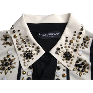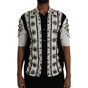 Dolce & Gabbana White Black Silk Studded Stone Crystal Shirt