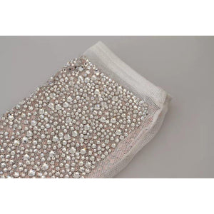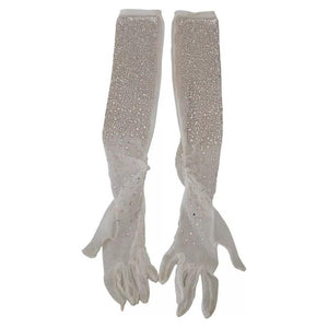 Dolce & Gabbana White Crystal Elbow Length Cotton Tulle Gloves